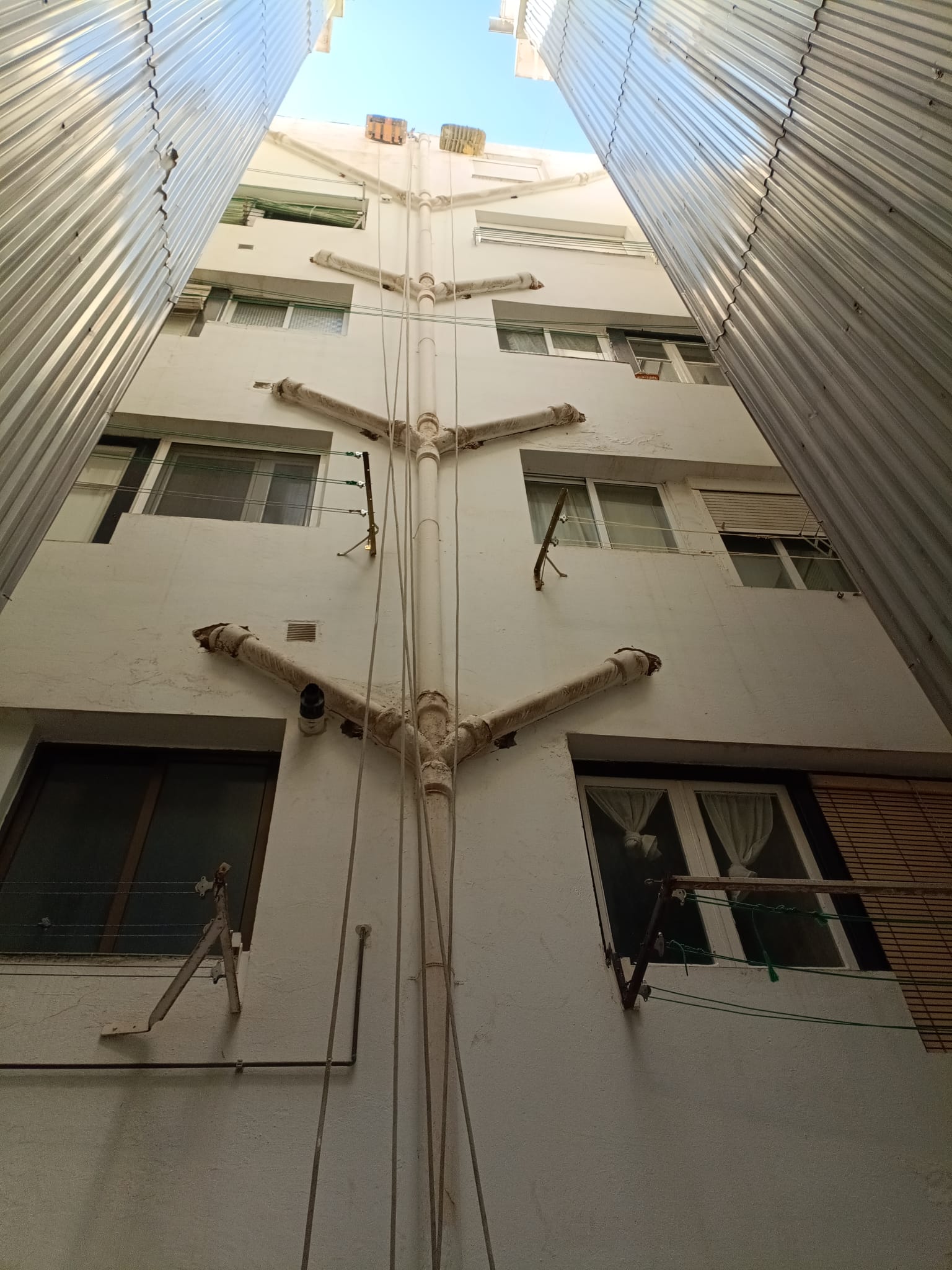 Retirada de bajantes de fibrocemento en patios interiores y fachadas