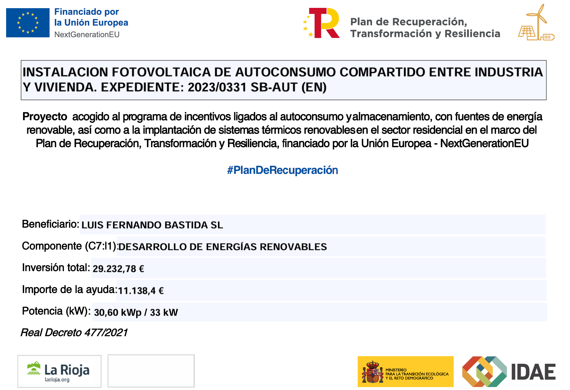 Posted in Sin categoríaApoyo de la Unión Europea a nuestra instalación fotovoltaica de autoconsumoLeer Más